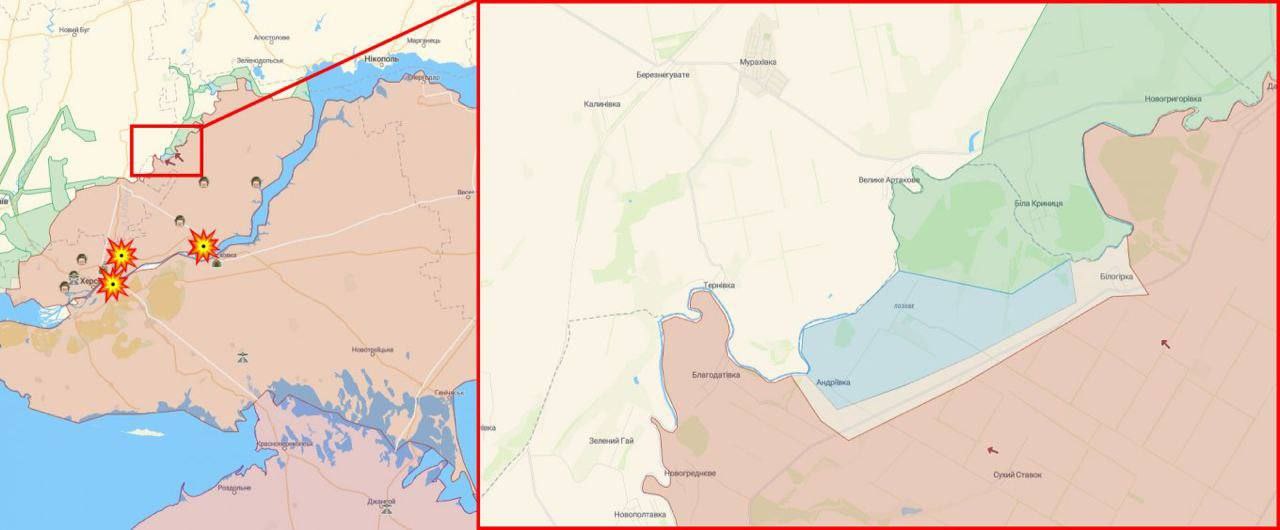 Продвижение совпало с рядом высокоточных ударов по логистическим артериям всей группировки ВС РФ на Правобережье. Речь идет не только об окончательном повреждении Антоновского моста, но и об атаках на автомобильный мост в Новой Каховке через шлюз ГЭС, и Дарьевский мост через Ингулец.