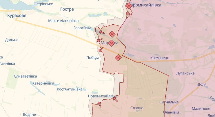 На Марьинском направлении наши защитники продолжают сдерживать врага недалеко от Марьинки и Новомихайловки Донецкой области, где отбито 9 атак.
