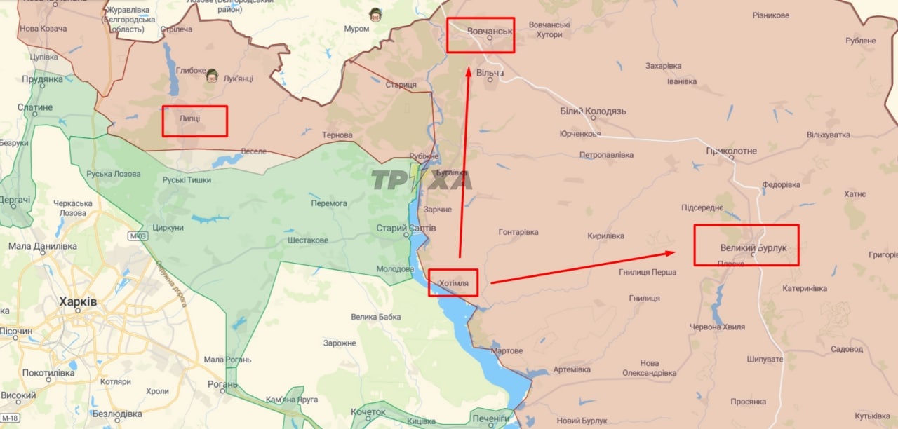 - Десант ВСУ взял н.п. Хотомля Харьковской области и движется на Волчанск и Великий Бурлук. Оккупанты начали эвакуацию из Волчанска.