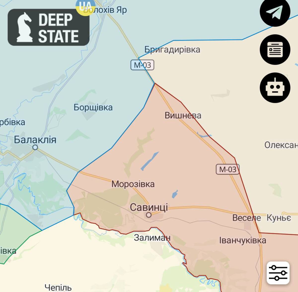 Кроме того под контроль ВСУ перешел населенный пункт Савинцы возле Балаклеи.
