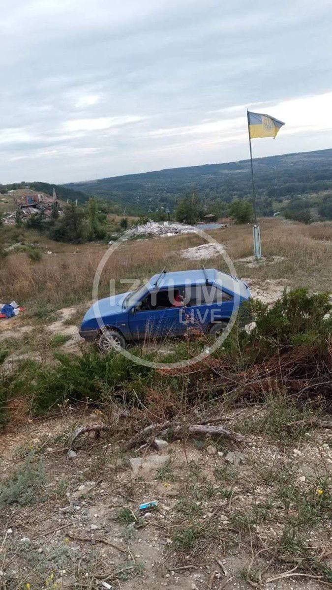 А вот так выглядит гора Кременец возле Изюма. Российский флаг брошен на землю, а украинский занял свое место.