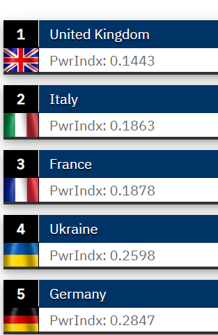 В пятерку самых мощных армий Европы входят Великобритания, Италия, Франция, Украина и Германия.