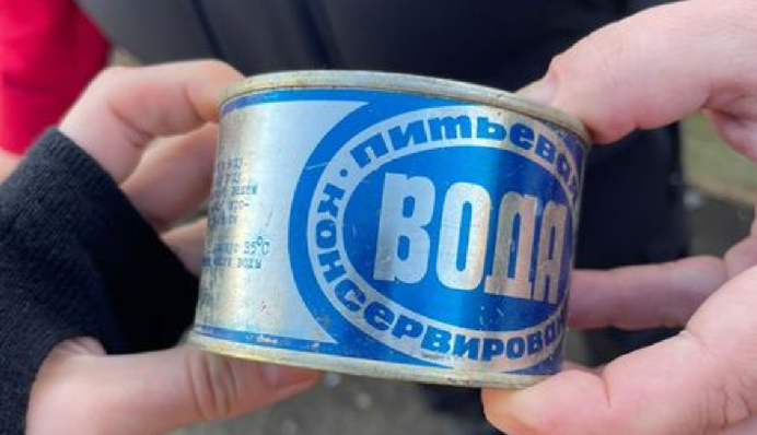 В сети показали странную находку, обнаруженную на оставленных российскими оккупантами позициях. Речь идет о консервированной воде, созданной в советские времена.