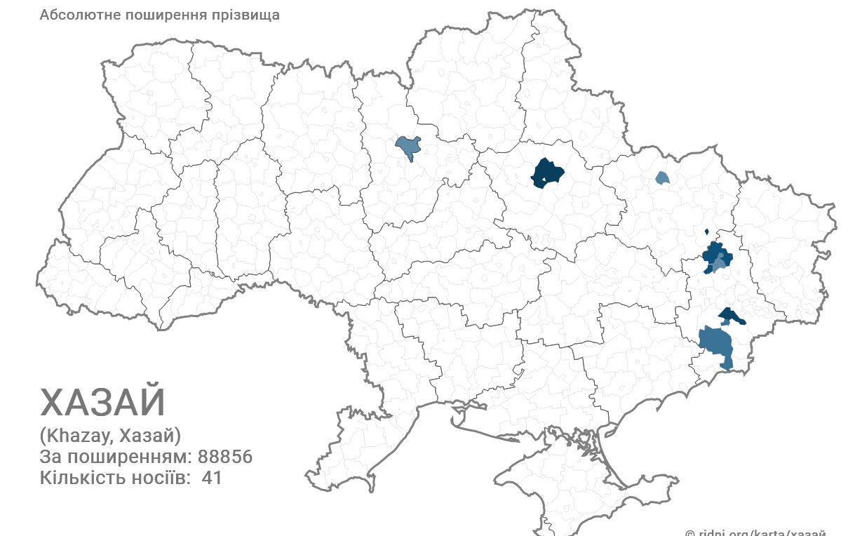 Фамилию Хазай сейчас имеет в Украине 41 человек. По распространению занимает 88 856 место. Наиболее часто можно встретить на Приднепровье.