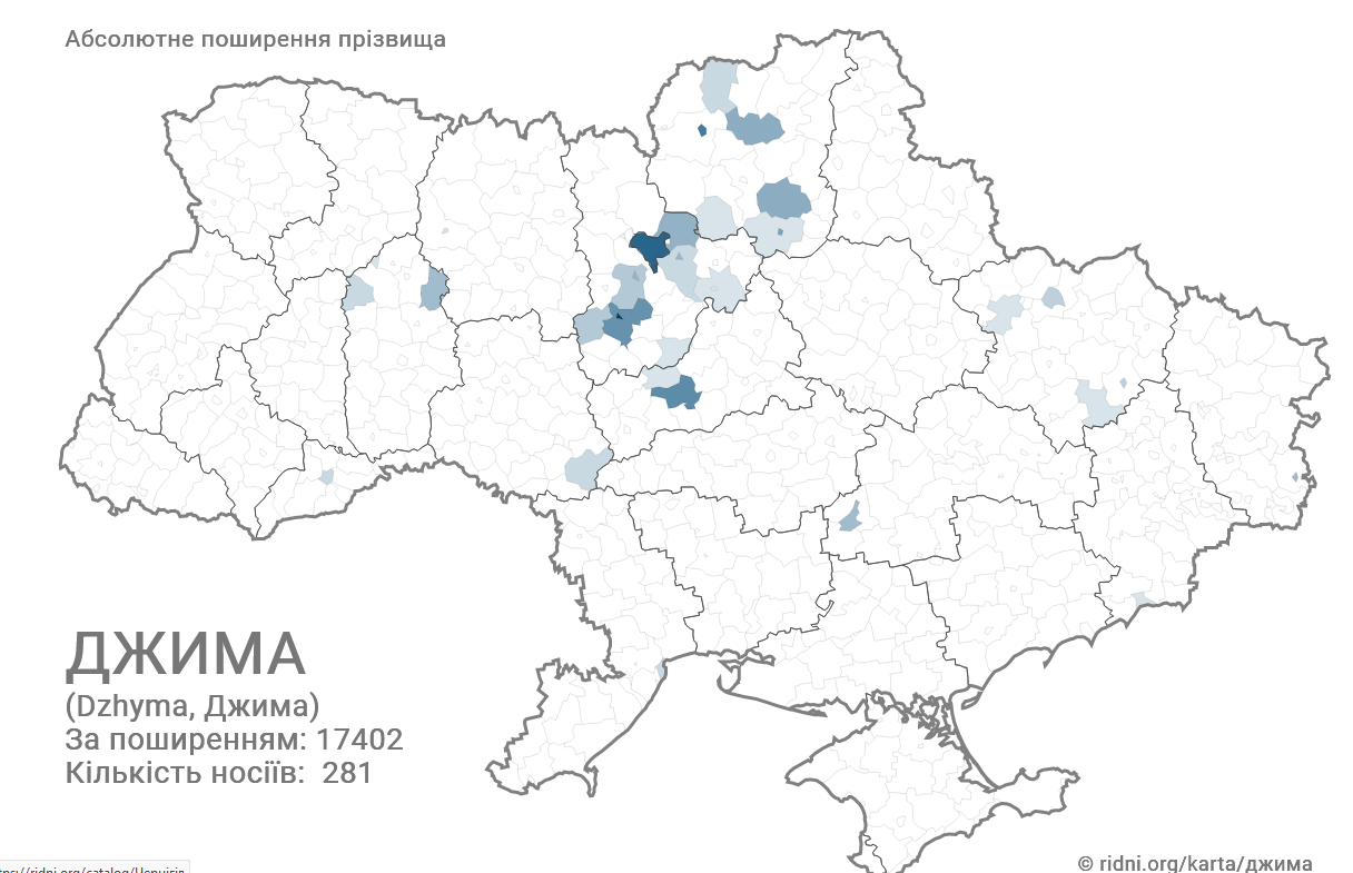 Фамилия Джима имеет также чеченские корни, сейчас в стране насчитывается 281 носитель. По распространению – на 17402 месте. Чаще всего встречается на Приднепровье.