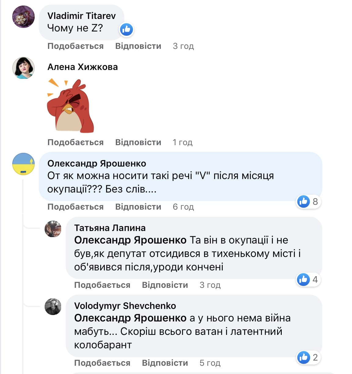 После того, как фотографии нардепа получили распространение в соцсетях, он публично извинился за неосторожность и заверил, что полностью поддерживает Украину. В то же время пользователи соцсетей не перестали возмущаться таким поступком, ведь российские оккупанты маркировали свою технику буквой V на Киевщине, часть территории которой пережила месяц под вражеской оккупацией.