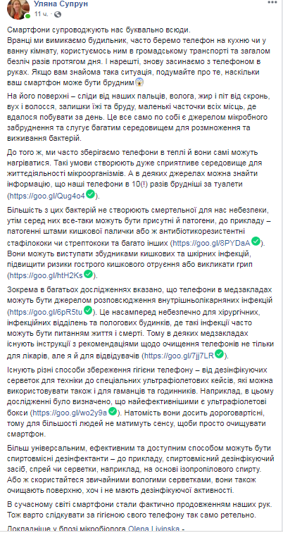 Она также поделилась информацией, как можно избавиться от опасный бактерий и призвала следить за гигиеной телефонов.