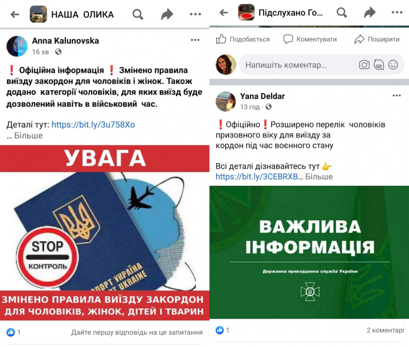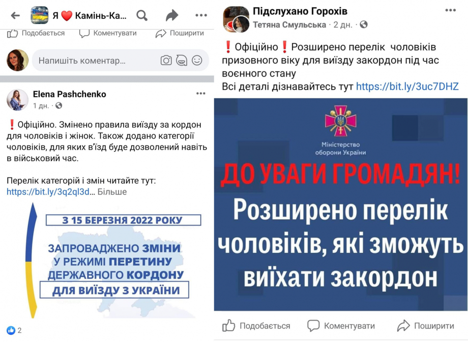 В период полномасштабной войны, которую в феврале развязала Российская Федерация, просторами интернета Украины ширится уйма фейков. Так, в сети можно часто найти сообщения о том, что в стране во время военного положения расширили перечень мужчин призывного возраста для выезда за границу.