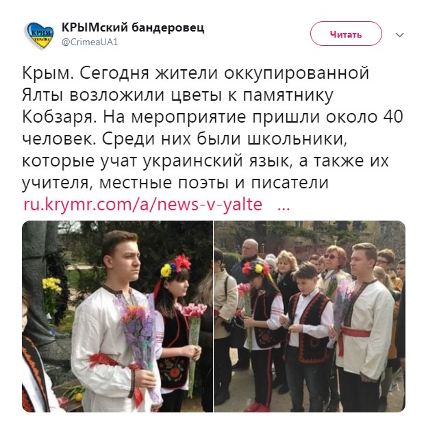 Как сообщал "Апостроф", ранее в аннексированном Крыму у памятника Тарасу Шевченко с российскими флагами наперевес устроили антибандеровский шабаш.