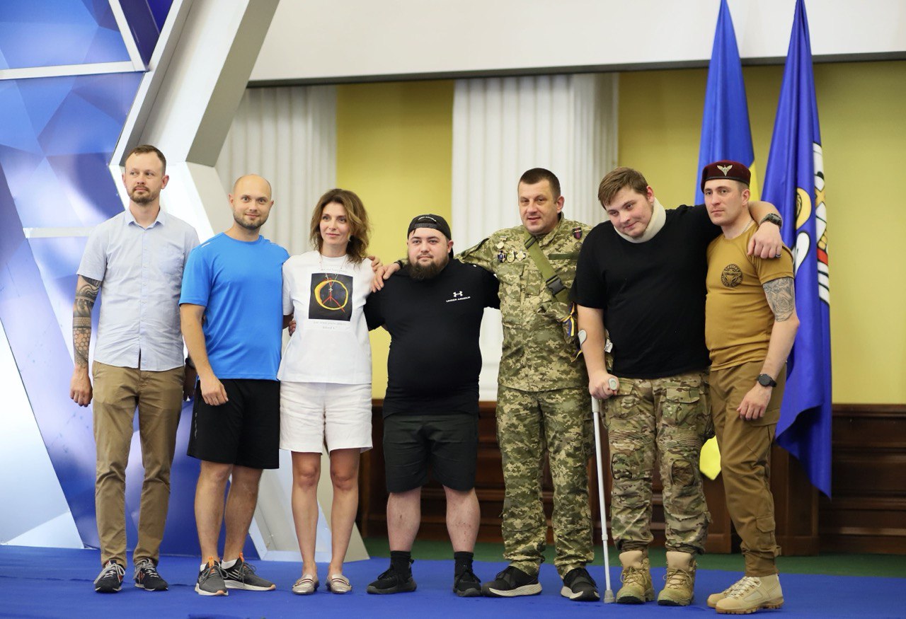 Фото - ветераны российско-украинской войны, участники выставки, с художницей CHEPURNA