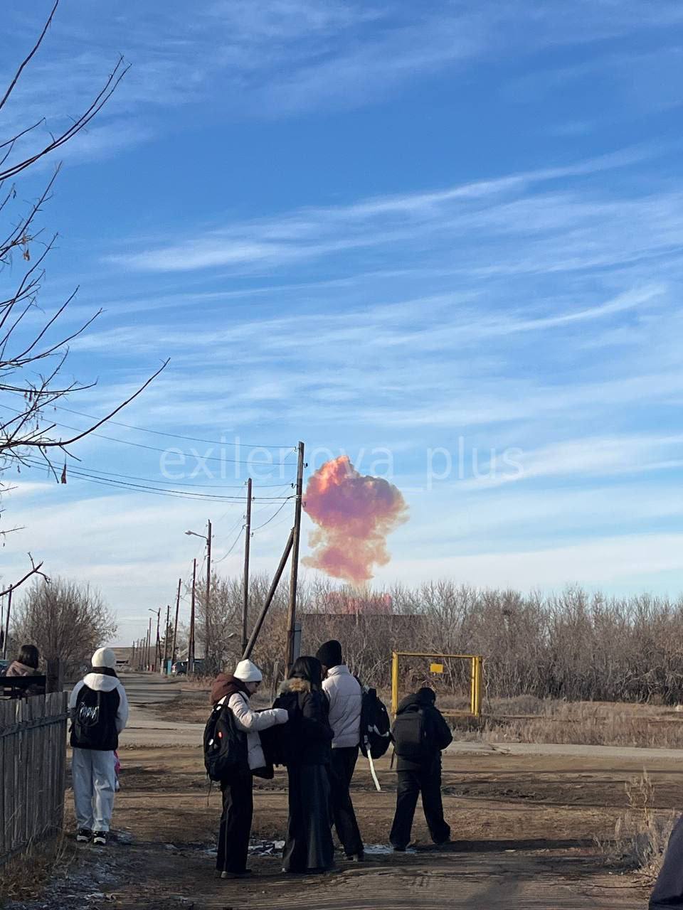 "Над городом Ясный в Оренбургской области, где находится одноименная пусковая база, поднялось облако фиолетового дыма. Перед этим был слышен взрыв", — пишет паблик.