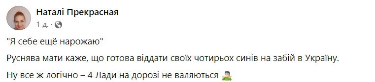 "Типичная российская мать", "Ну все логично - 4 лады на дороге не валяются", "Программа в мире животных", "Еще нарожаю - девиз по жизни", - написали украинцы в соцсетях, реагируя на обращение россиянки.