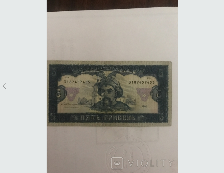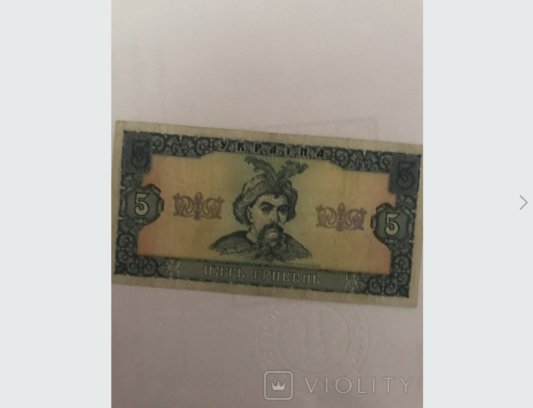 Редкая банкнота номиналом в 5 гривен еще старого образца – она была напечатана в 1992 году и была в обиходе с 1996 по 2003 год. На обычной купюре такого типа на лицевой стороне в центре изображен Богдан Хмельницкий, на обратной – Ильинская церковь в селе Суботов (Черкасская область) – семейная усыпальница Богдана Хмельницкого. Дизайн обеих сторон дополнен орнаментами. На банкноте также написан год печати – 1992. Преобладающий цвет – темно-синий.