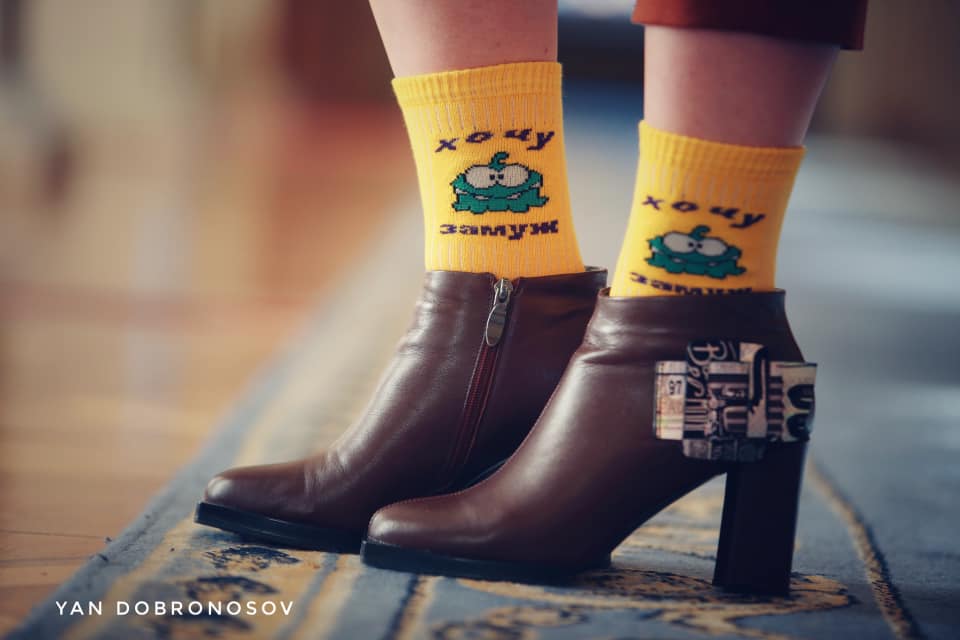 Нардеп пришла на работу в желтых носках с забавным принтом и надписью "Хочу замуж".