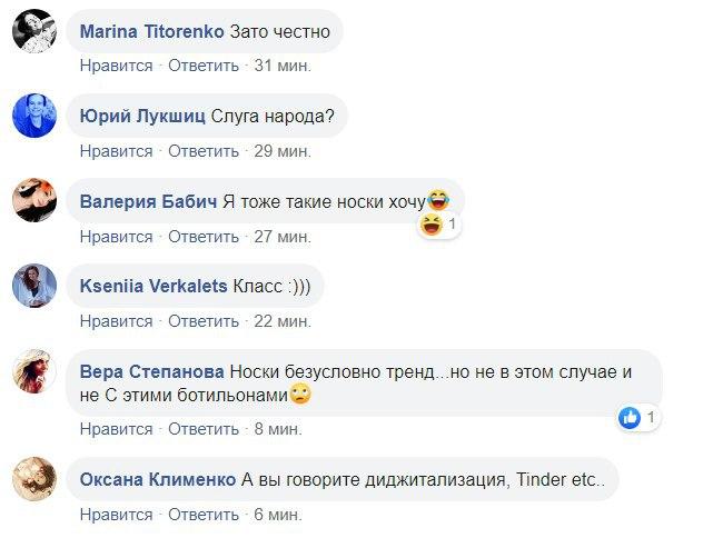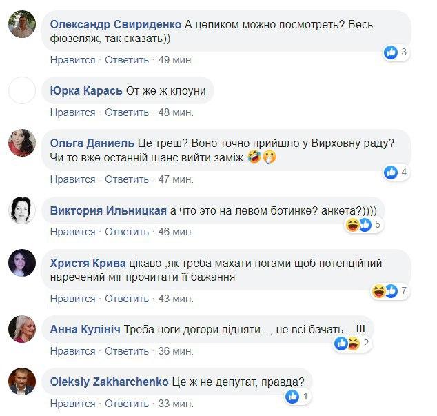 "С ногами заберут", "Вчера же вроде запретили в клоунских нарядах заходить", "Это чьи ноги? Савченко?", "Хорошо когда люди идут на работу с конкретной целью" , "Почему носки говорят по-русски в стенах официального учреждения", - пишут в комментариях.