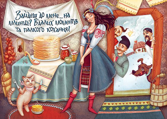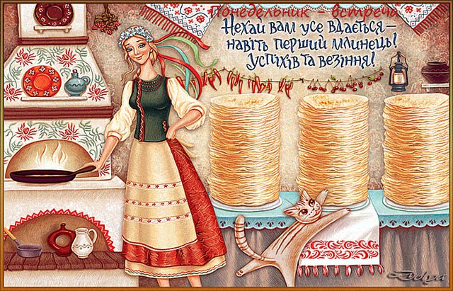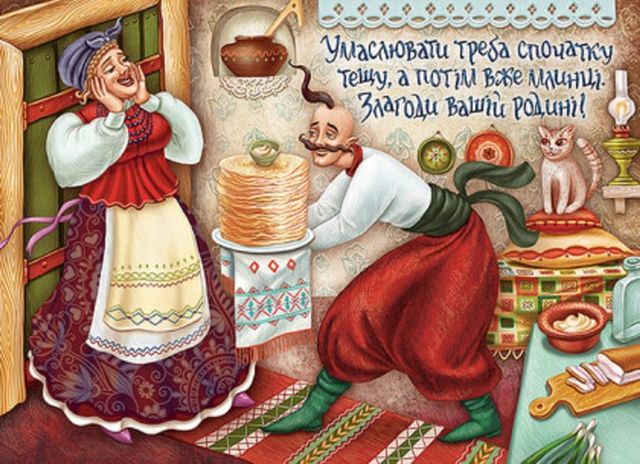 Интересно, что в Украине главным угощением на Масленицу были не блины, а вареники с творогом. Кроме того традиционными блюдами в эти дни были холодец из свиных ножек, гречневые налистники, капустняк и разные каши с маслом и смальцем.