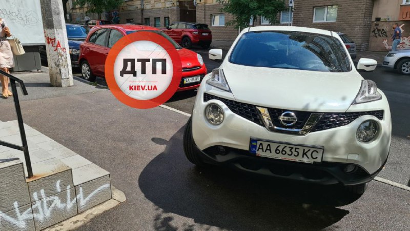На улице Олеся Гончара в Шевченковском районе Киева водитель Nissan припарковался прямо на тротуаре, который предназначен для пешеходов.