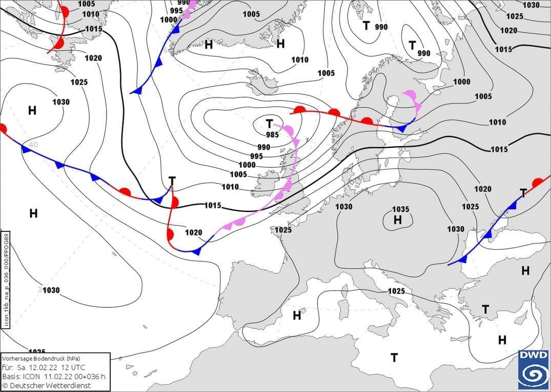 На выходных солнечную, но холодную погоду принесет в Украину антициклон. Днем 12 февраля основная часть территории окажется в сухой воздушной массе. Возможен снег только на востоке.