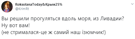 "Вы решили прогуляться вдоль моря, из Ливадии? Ну вот вам! (не стрималася - це ж самий наш ізюмчик!)", - написала она и опубликовала фотографии.
