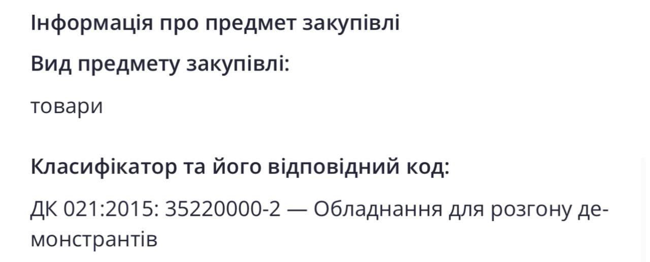 "Национальная гвардия не будет закупать средства для несения службы по охране общественного порядка. Тендер на соответствующую закупку отменен", – отмечается в сообщении.