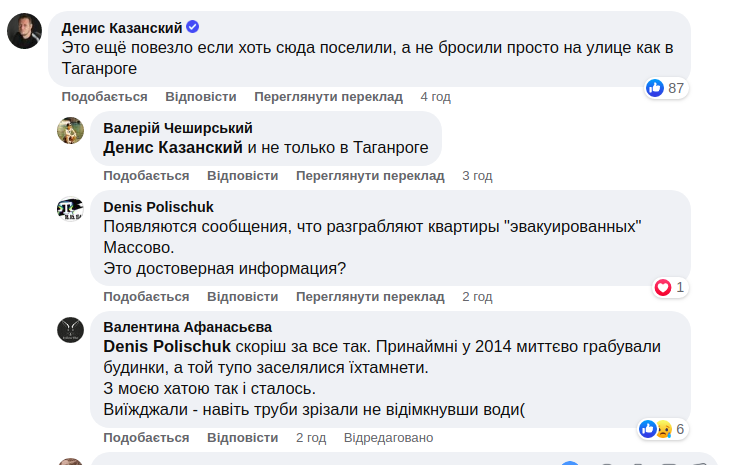 Журналист и блогер Денис Казанский отметил, что этим людям "еще повезло, если их хоть сюда поселили, а не бросили на улице, как в Таганроге".