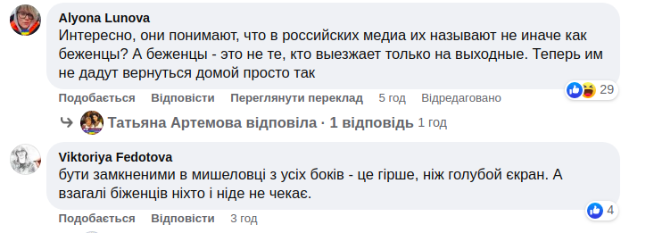 В комментариях к посту пользователи соцсети высмеяли название "лагеря для беженцев" и отметили, что для российской пропаганды все равно, что будет с этим людьми дальше.
