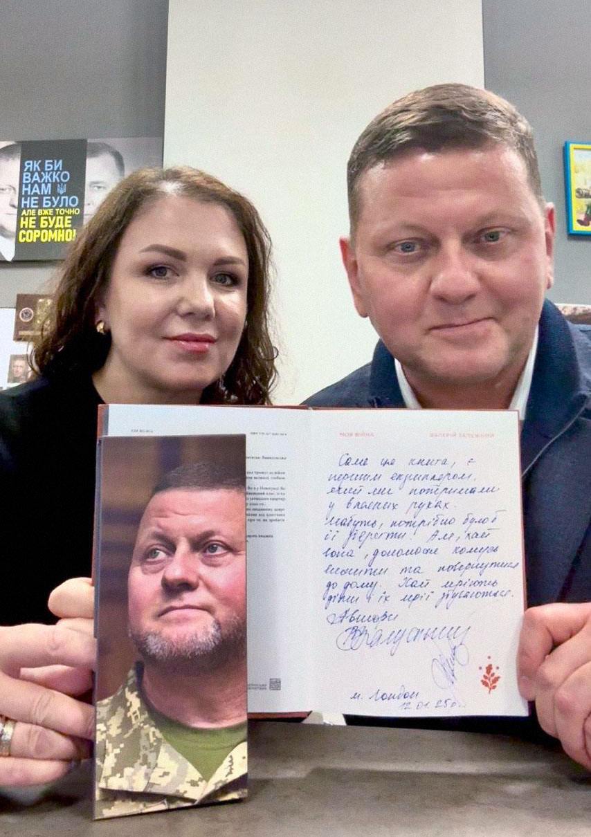"А для самого щедрого благотворителя – уникальный подарок: экземпляр книги Валерия Залужного "Моя война" с первыми эксклюзивными подписями Валерия Федоровича и его жены Елены", - говорят организаторы.