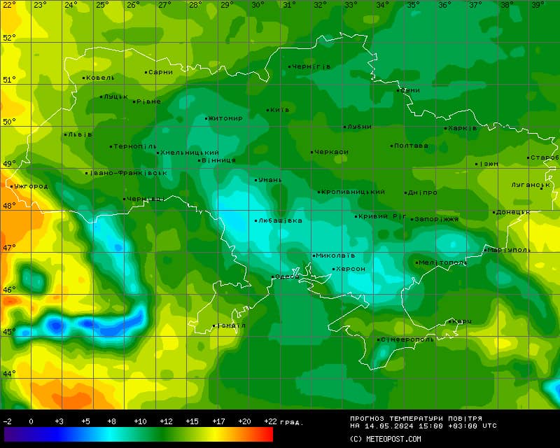 В Киеве 14 мая осадков не предполагается. Ночью +3+5 градусов, днем около +12 градусов.
