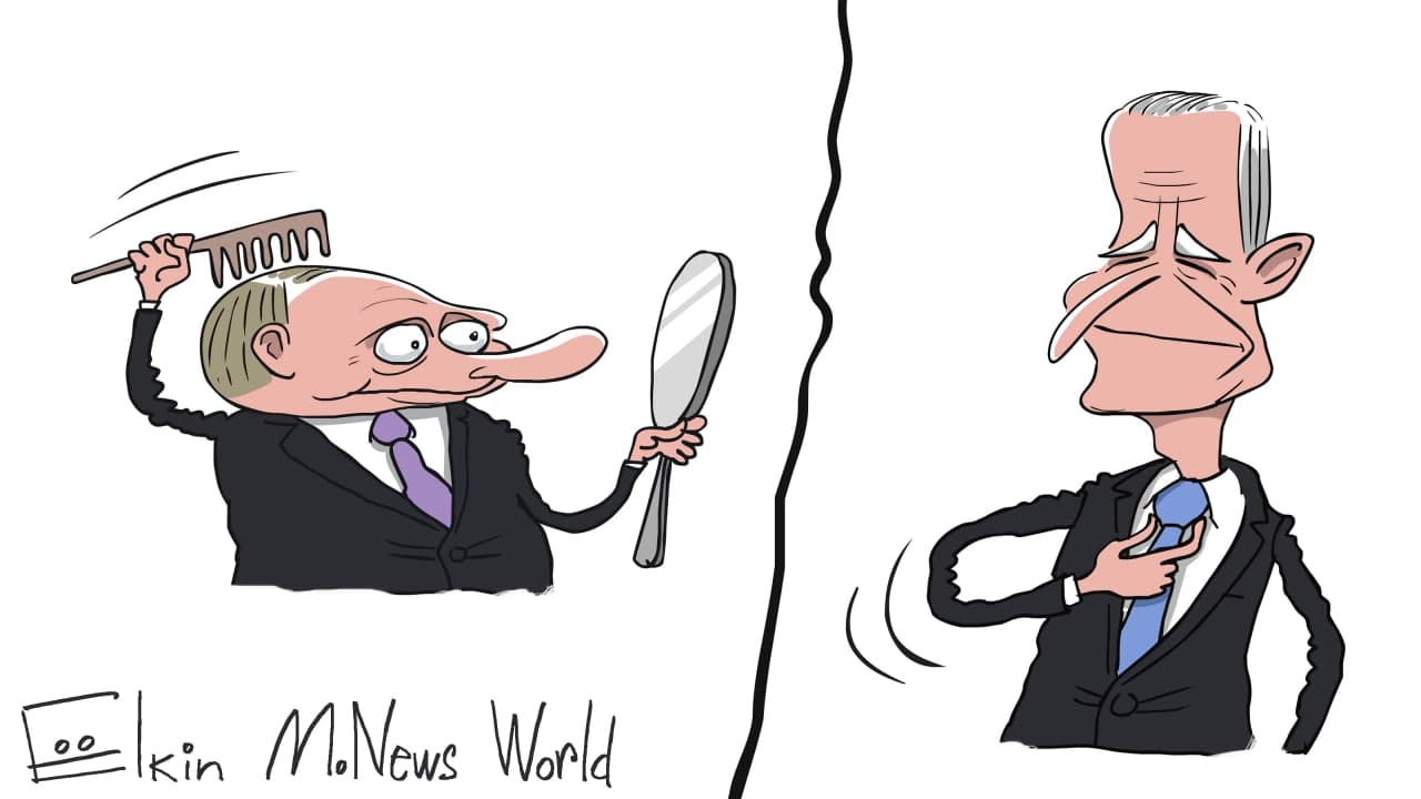 Политические карикатуры нарисовал русский художник Сергей Елкин, разместив в своем Telegram.