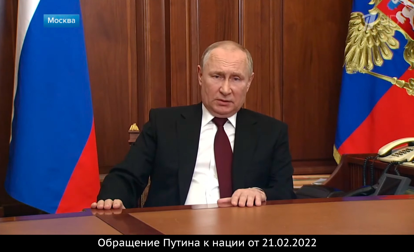 Кроме того, эксперты расследовательской группы Conflict Intelligence Team в Twitter также обратили внимание на то, что одежда Путина во время обращения такая же, как и во время заседания Совбеза РФ, которое состоялось 21 февраля.