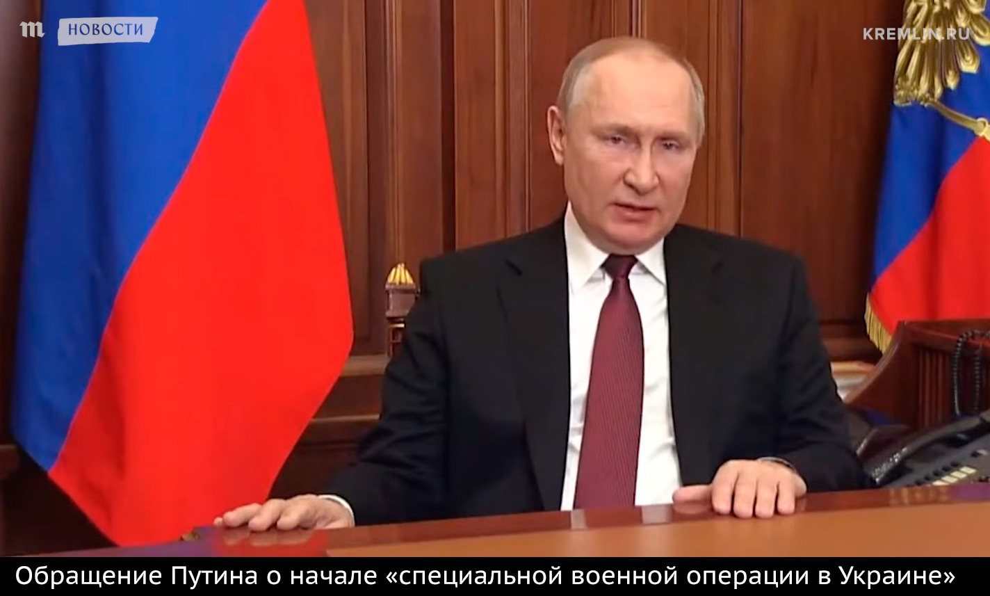 Президент России Владимир Путин записал видео об объявлении войны Украине еще 21 февраля, а на сайте Кремля оно появилось только 24 февраля.