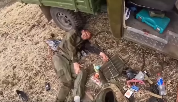 Как видно на видео, украинцы обнаружили брошенный автомобиль, на котором бежали россияне, а рядом с ним россиянина. Он рассказал, что он ранен, а трое его сослуживцев скрылись в посадке.