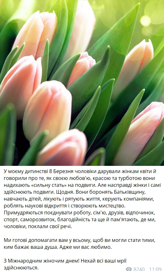 Президент Украины Владимир Зеленский трогательно поздравил женщин с Международным женским днем 8 марта.