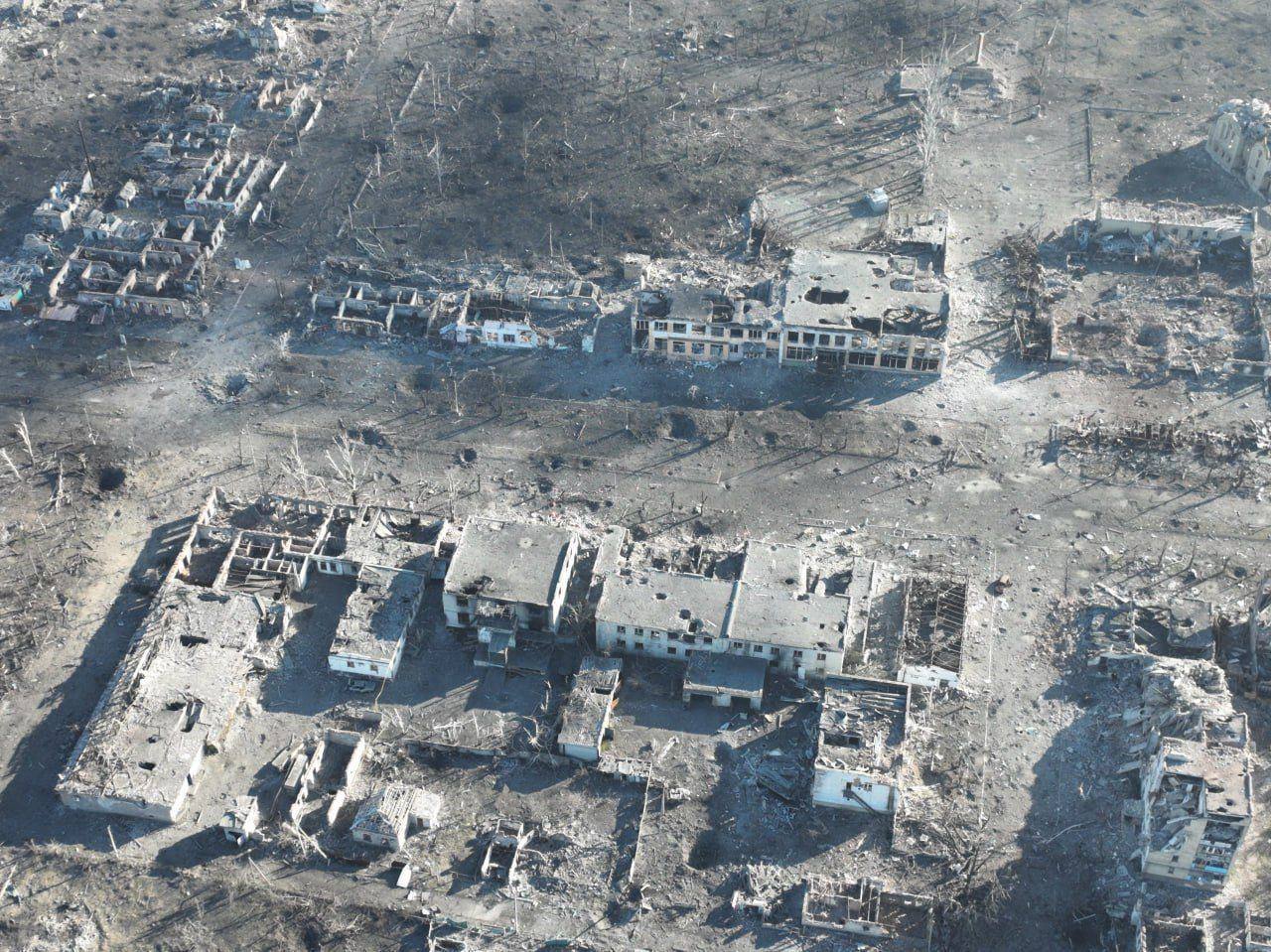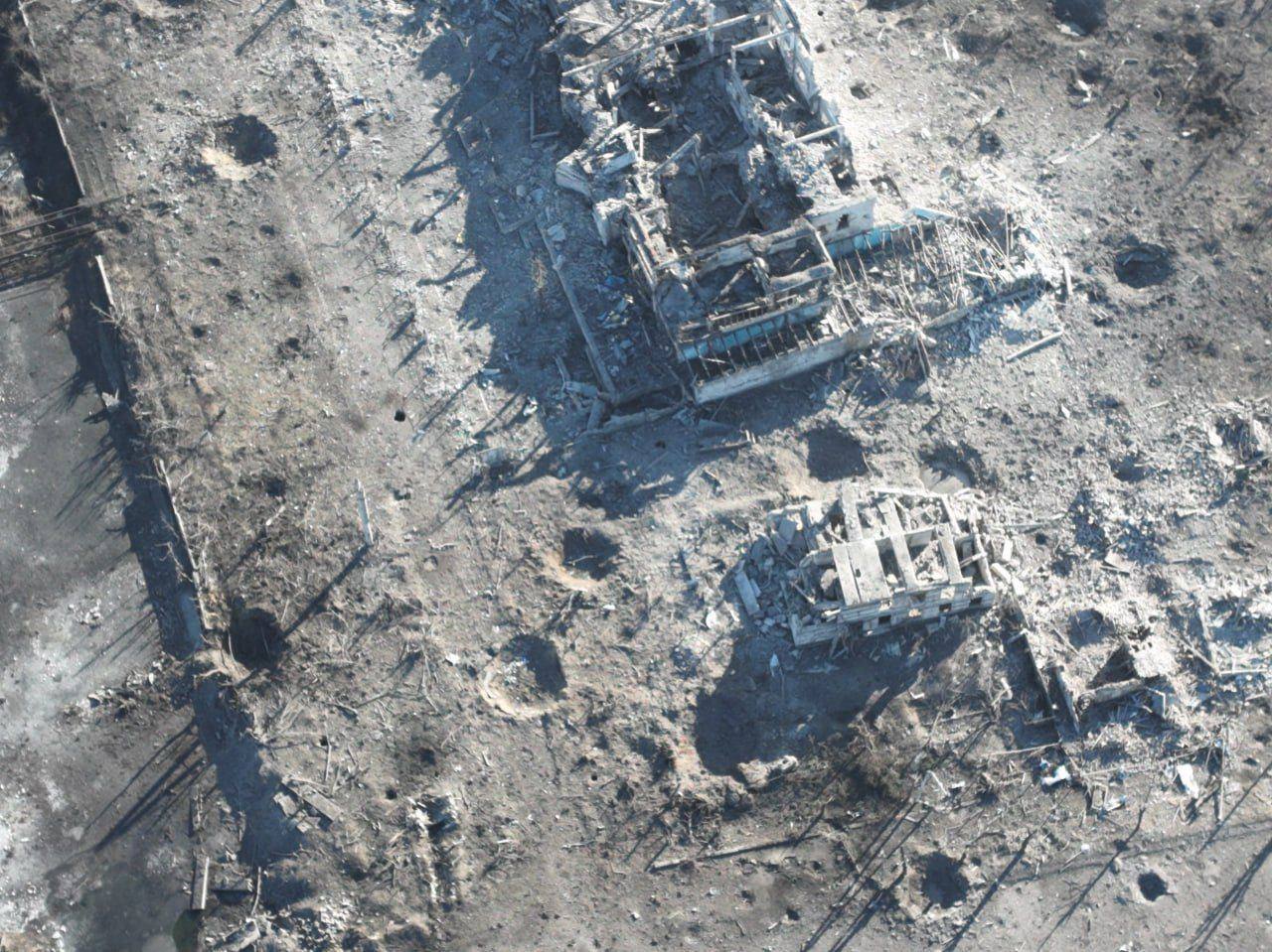 "Апостроф" публикует фотографии разрушенной врагом Марьинки с высоты птичьего полета.