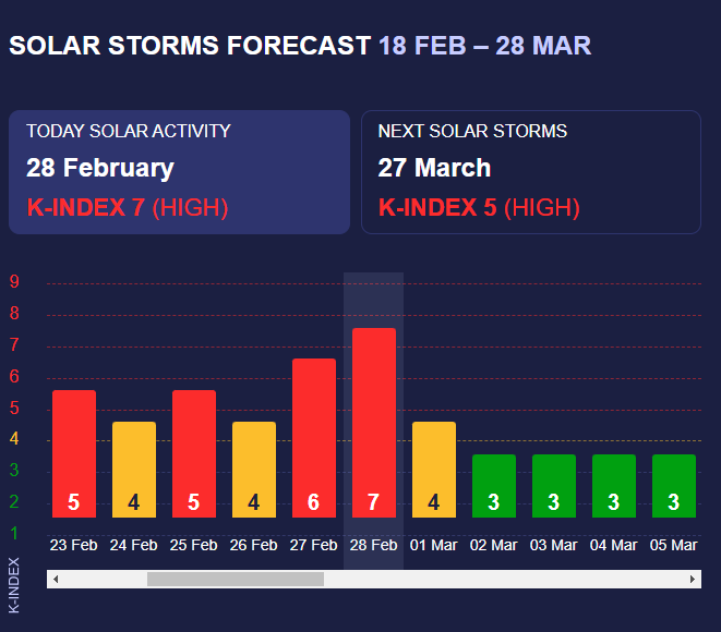 В последний день зимы, 28 февраля, Землю накрыла мощная магнитная буря красного уровня мощностью 7 баллов (из 9 возможных).
