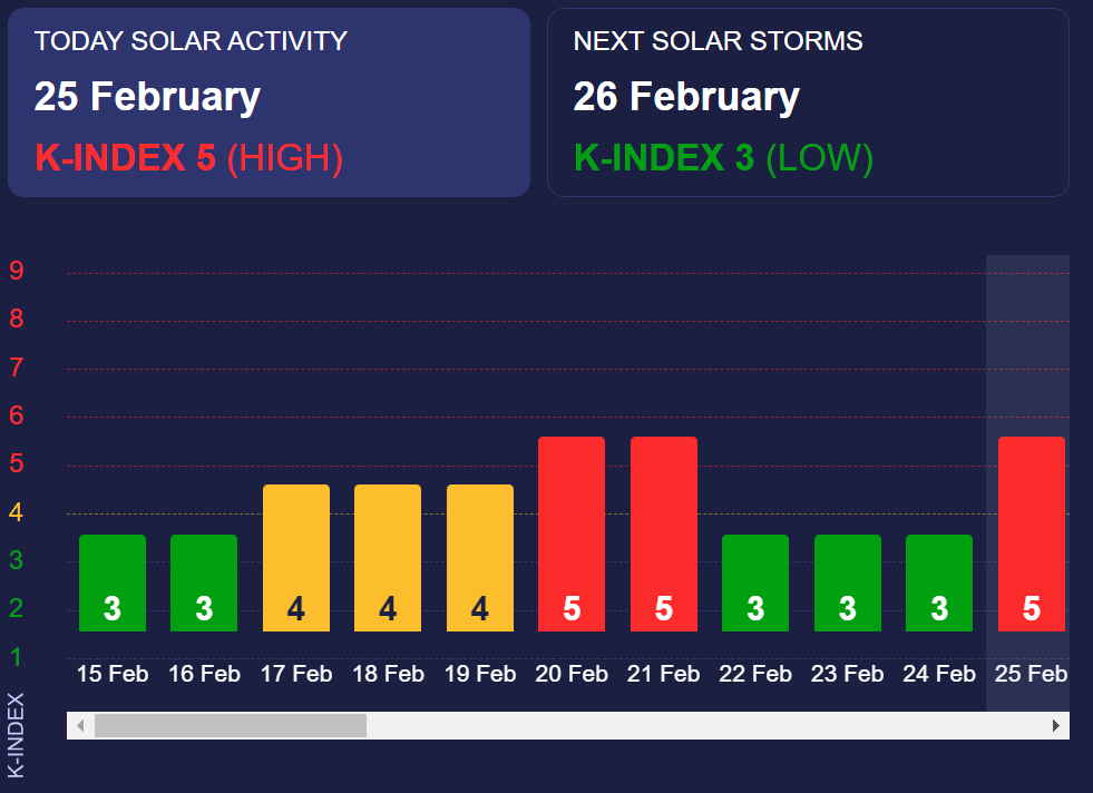 В воскресенье, 25 февраля, Землю накрыла мощная магнитная буря красного уровня в пять баллов. Она может оказывать плохое влияние на самочувствие человека.