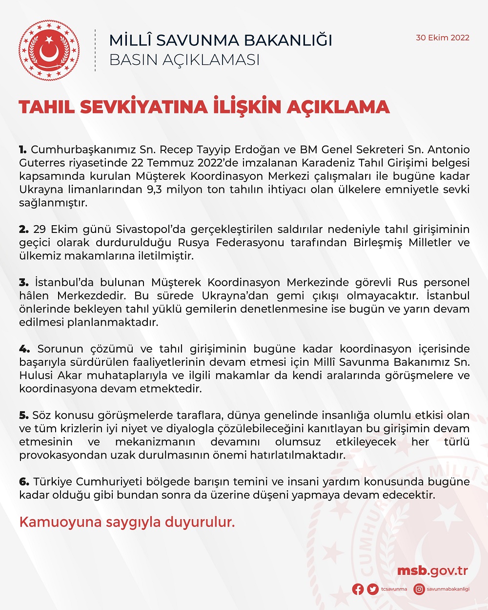 Ранее мы писали, после заявлений Минобороны РФ о выходе из зерновой сделки из-за "теракта" по кораблям ЧФ в Севастопольской бухте, Турция в координации с ООН начала контакты с Россией.