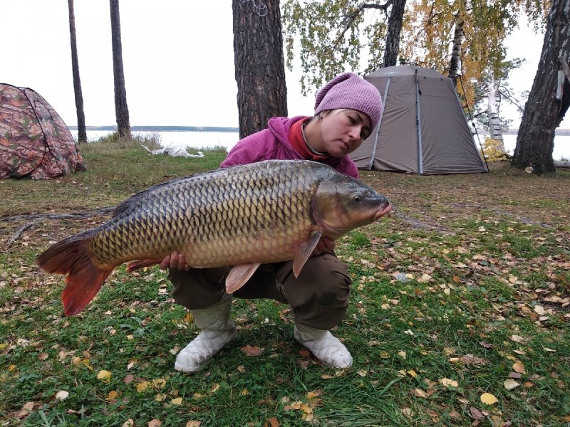 "Я решила дать рыбе утомиться: пришлось ждать 20 минут, пока удалось подтянуть сазана к лодке. Муж вовремя подставил сачок, и мы затащили рыбу в лодку", - рассказала Лариса Северина, которая занимается рыбалкой уже 30 лет.