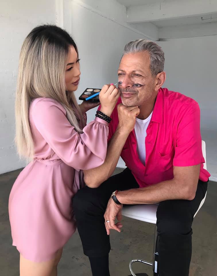 Женщина успела поработать даже с Джефом Голдблюмом, снявшимся в фильме "Парк Юрского периода". Она очень креативно разрисовала его лицо.