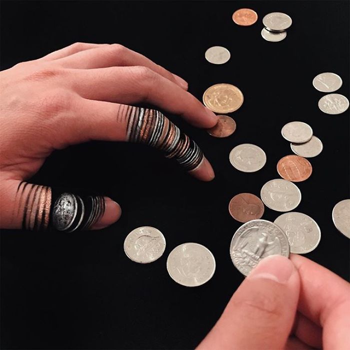 Мими превращает свое тело в художественные и красивые оптические иллюзии. Ее ноги выглядят как бананы или кактусы, а руки - как хот-доги.