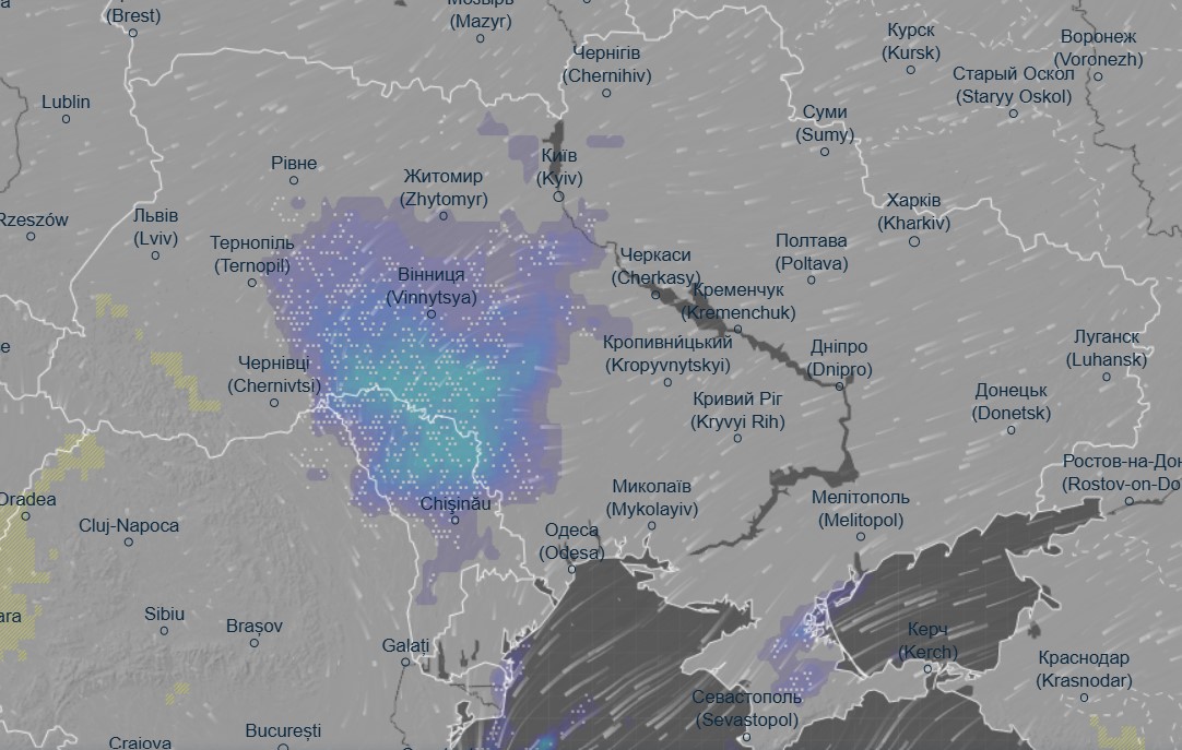 Об этом свидетельствуют данные метеоресурса Ventusky.