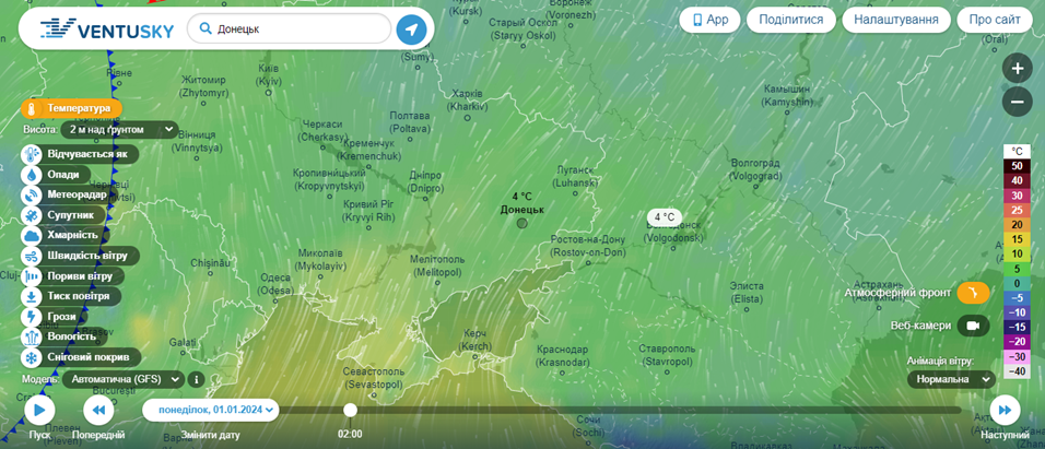 В Донецке в новогоднюю ночь – 4 с отметкой плюс. Осадков не предвидется.