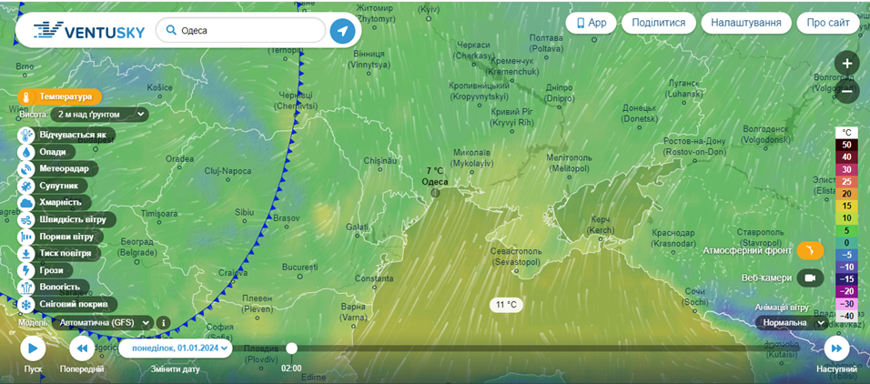 В Одессе, несмотря на зиму, по-весеннему до +7. Осадков также не предполагается. Влажность воздуха будет составлять 90 процентов.