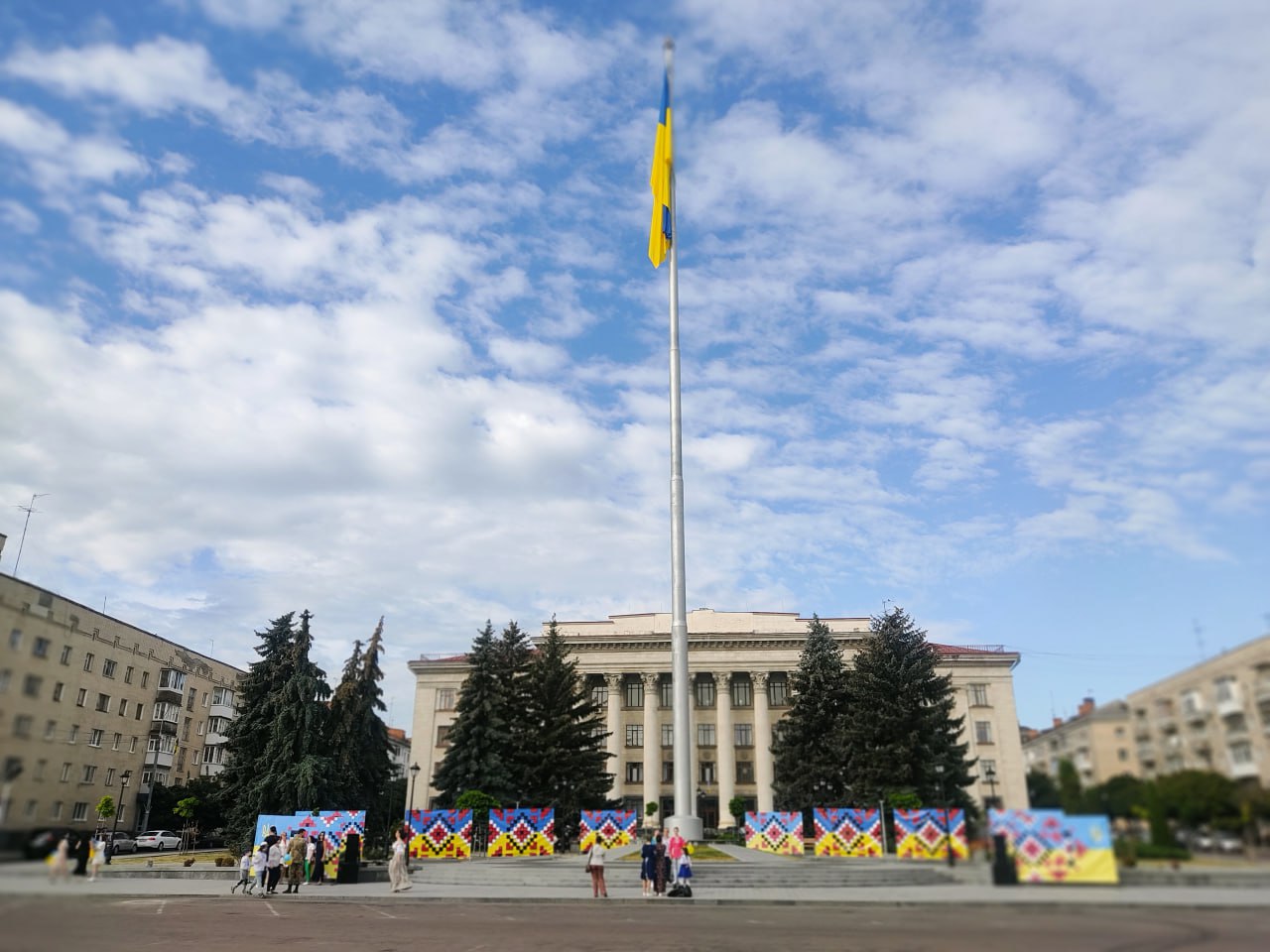 В городах и селах Украины проводятся торжественные мероприятия по случаю Дня Государственного Флага. Так, торжественно подняли государственный флаг на центральной площади Черкасс.