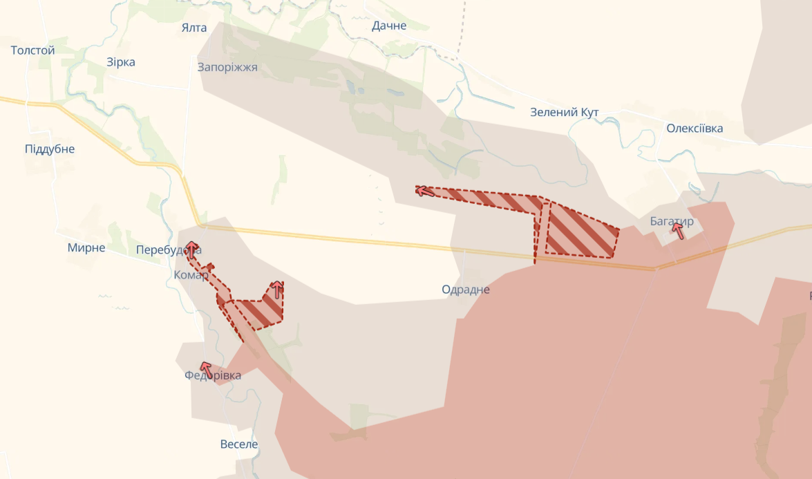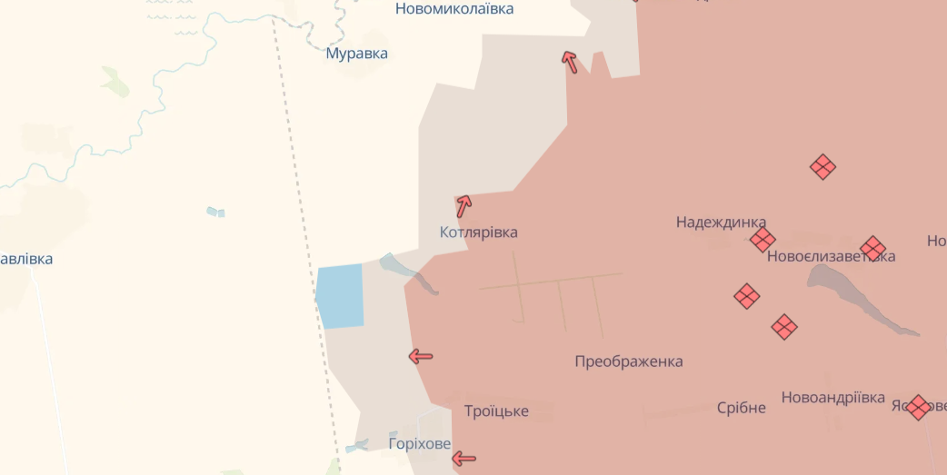 Вместе с этим в DeepState указывают, что российские оккупанты имеют продвижение у Отрадного, Шевченко Первого и в Комаре, находящихся в пределах Донецкой области вблизи н.п. Константиновка.