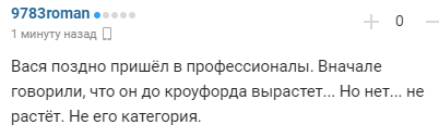 "Вася поздно пришел в профессионалы. Вначале говорили, что он до Кроуфорда вырастет... Но нет... не растет. Не его категория".