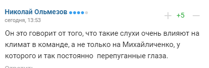 "Он это говорит от того, что такие слухи очень влияют на климат в команде, а не только на Михайличенко, у которого и так постоянно перепуганные глаза".