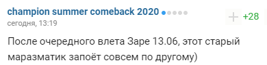 "После очередного влета "Заре" 13.06, этот старый маразматик запоет совсем по-другому)".
