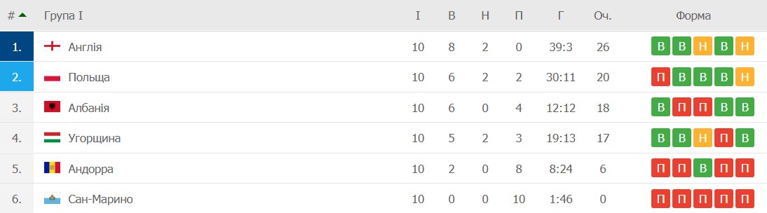 Первая команда воспользовалась оплошностью итальянцев, которые не смогли обыграть в своем матче Северную Ирландию. Англичане же поиздевались над Сан-Марино.