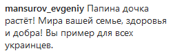 "Папина дочка растет! Мира вашей семье, здоровья и добра! Вы пример для всех украинцев".